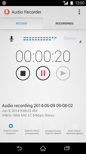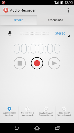錄音器應用程式最適合執行Android 4.1或更高版本的Sony Xperia™智慧型手機。此應用程式與其他Android裝置配合使用時,其功能可能無法達到最佳程度。