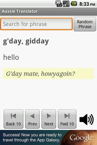 * Aussie Translator contains 700 Australian slang phrases, their common English meanings and a practical example of their use.
