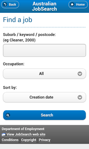 Job seekers can find jobs around them with one tap or can search for jobs by using a suburb name, a post code or a keyword. Job seekers can also find employment service providers around them with one tap or by using a post code.