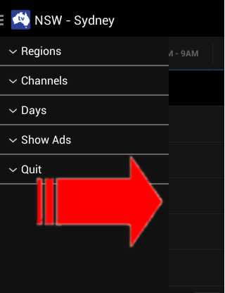 It displays the guide per regions (Sydney, Melbourne, Perth, Adelaïde and many other regions) on severals days.