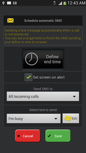 Send predefined Automatic text message for your choice when you cannot reach the phone.
