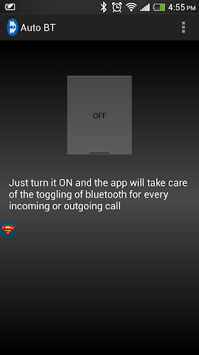 Aid your bluetooth headset with this app to automatically toggle bluetooth. It automatically turns on the bluetooth whenever a call is received or made and automatically turns it off when the call is disconnected.