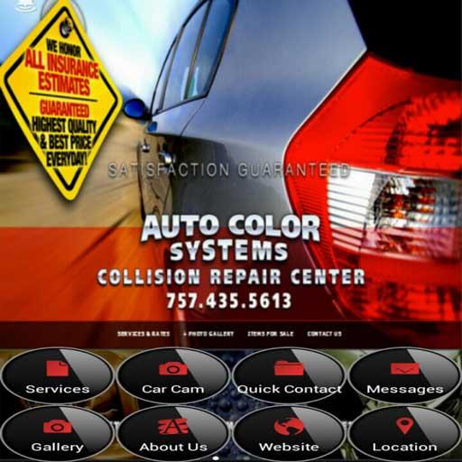 Auto Color Systems is Virginia Beach Auto Body Repair and Collision center...It's also a company that likes Apps. The ACS app makes it easy to share photos with us. Take pics of accidents, take video, just show us with your car and happy and you can make it into our Fan Gallery. The world is full of cars and people with them. We just want to see pics.