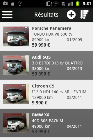 Grace à l’application Auto Exclusive 67 vous pourrez consulter toutes les annonces de véhicules. Vous pourrez sauvegarder vos annonces préférées dans vos Favoris. Grâce à un moteur de recherche intuitif, vous trouverez facilement la voiture que vous cherchez. Vous pouvez aussi déposer une recherche personnalisée depuis cette application pour trouver la voiture de vos rêves sans recherche ni effort grâce au système de recherche personnalisée !