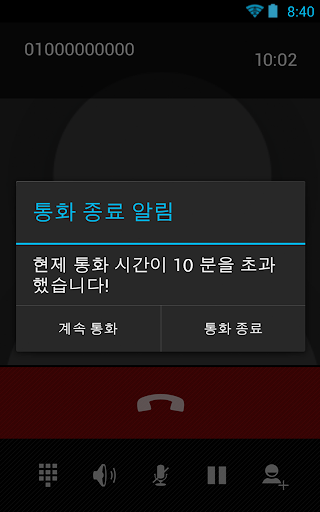 -설정된 시간을 넘겨서 통화가 계속되면 통화 종료.