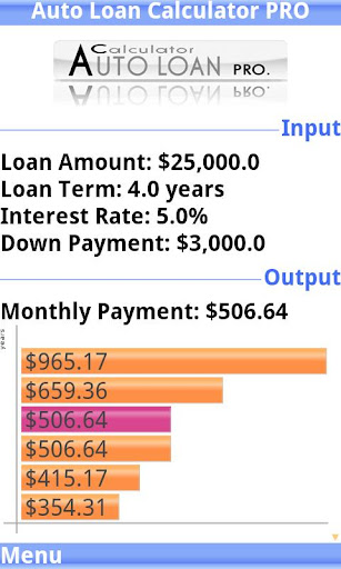 Auto Laon Calculator PRO will help you calculate your monthly auto loan payments or the total purchase price of your car.