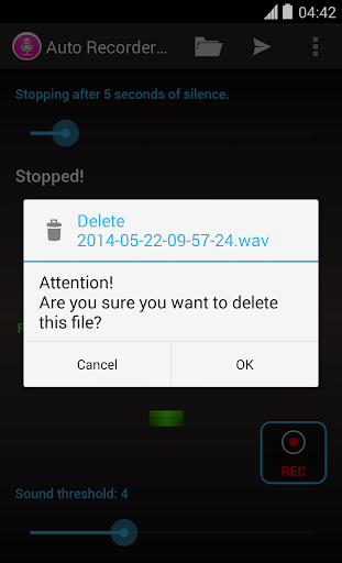 Auto Recorder, starts and stops the record function when sound of a sufficient level is picked up by the microphone. This feature saves valuable recording time by not recording periods when there is little or no sound.