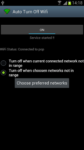 This application can automatically turn off Wifi after disconnected and help you saving battery!!.
