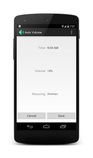 Schedule volume changes automatically! Have your device automatically silenced when you go to work, and ring again when you get home.