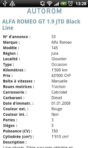 AutoRom est une application d'annonces de vente de véhicules automobiles. Cette application vous permet de trouver des véhicules tels que voitures, moto, scooter et autres.