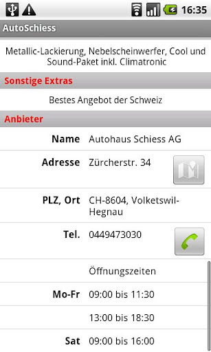 - Direktes Kontaktieren der Autohaus Schiess AG aus der Applikation heraus