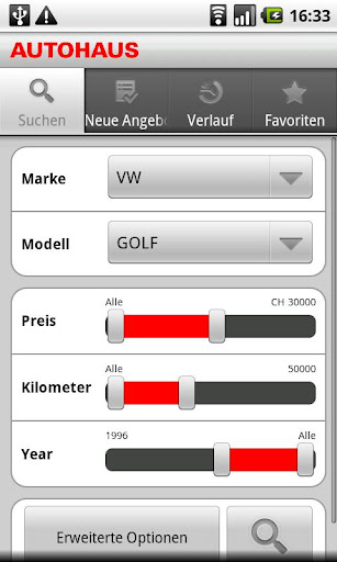 - Erweiterte Suche (Ausstattung, Getriebe, etc.)