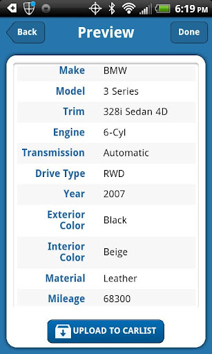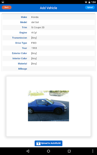 AutoWurld Mobile lists your car for sale nationwide, in 60-seconds or less! Just sign in with your AutoWurld.com credentials, scan the VIN, snap the photos with your Android device, enter price and options, and upload. It’s fast! It’s easy! It’s FREE!