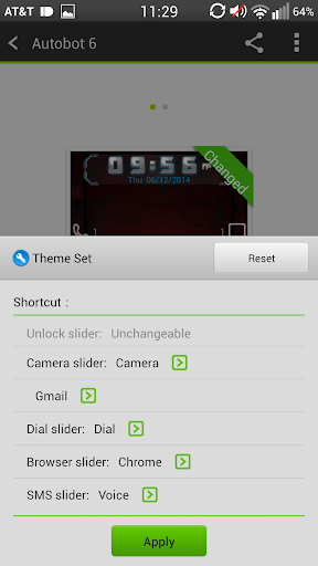 Transform your lockscreen with something that is "more than meets the eye" with Autobot 6 Go Locker Theme! This clean and powerful looking theme allows you to customize your unlock apps to bring efficiency to your lockscreen and fingertips! Enjoy this Transformers inspired Go Locker theme!
