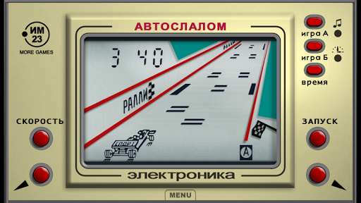 ★ Autoslalom ★ is a remake of a classic handheld electronic game console "Elektronika IM-23". It was produced in Russia early 90's, and had a huge popularity at that time. The principle of the game is simple: you control a racing car by pressing left/right buttons, and you must avoid car crashing into blocks on the road.