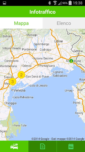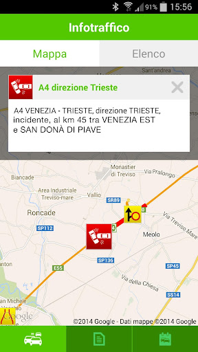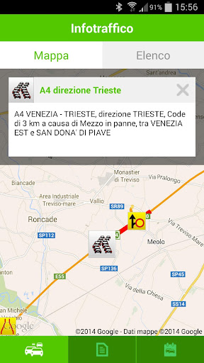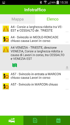 Informazioni in tempo reale sulle condizioni della viabilità autostradale. Le criticità (incidenti, code, lavori) vengono evidenziate da apposite icone colorate sulla mappa o nell’elenco eventi a disposizione.