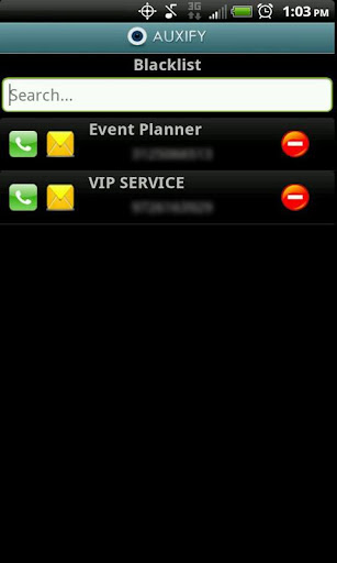 **HIDE OUTGOING CALLS AND TEXTS: Within Auxify, you can place hidden calls and text messages to individuals on your blacklist and they won’t appear in your list of outgoing calls or sent messages. You still have access to all the details of the calls and messages, but no one else does.