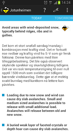 The app makes it very simple to check the current avalanche forecasts for your area.