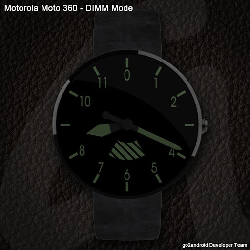 Eine kleine Besonderheit gibt es neben der Motorola Moto 360 Beleuchtungssensor Optimierung dennoch! Das go2android Developer Team hat speziell für das inaktive Display (in den Einstellungen aktivieren) eine phosphorisierende Nachtleuchtfarbe simuliert, die lediglich die Zahlen der Stunden und den jeweiligen Stundenzeiger als auch den Minutenzeiger darstellt.
