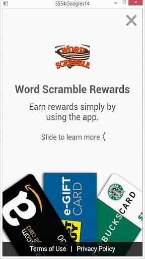 This is a super fun, highly addictive word game. The objective of this game is to solve a puzzle in which the letters of the word have been rearranged. You have to rearrange the letters in the right order and discover the word. The meaning of the word is given as a hint. If you have guess the original word correctly, you win ! Btw, you get mPoints, not just for winning, but also for playing. These mPoints can be used for REAL rewards at retailers like Amazon, Walmart, Best Buy etc.