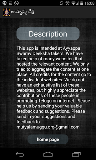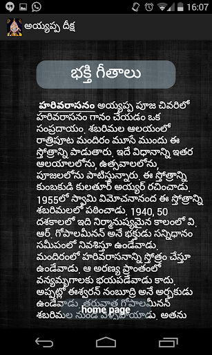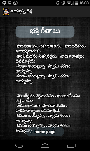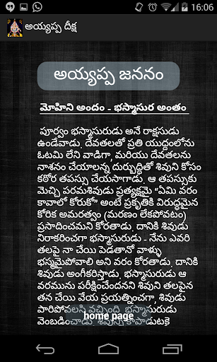 This app intends to help Ayyappa Deeksha sworn samys with their daily Pooja and other rituals, it also has ayyappa deeksha niyamavali. All this information is in Telugu.