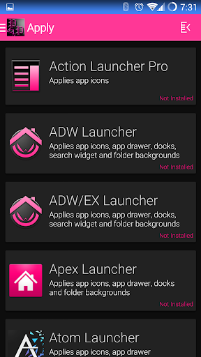 - Support for Apex, Nova, Next (Basic Icon Support), ADW, Smart, Action, TSF (Basic Icon Support), GoLauncher and a few others.