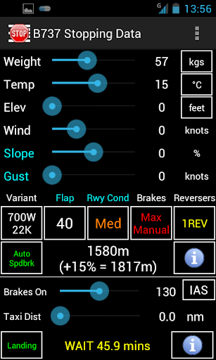 Runway overruns are one of a pilot's worst aviation nightmares. Recent change to some countries regulations require you to ensure you have a 15% buffer between your expected stopping distance based on the QRH figures and the actual runway length. You need a fast and accurate way to confirm that calculation you have done with the tables because it can be complex and you have to interpolate. You can make mistakes but this app, which uses the Boeing 737 QRH figures, is a backup to your manual calculation.