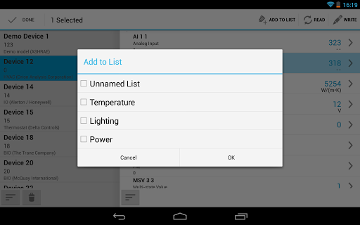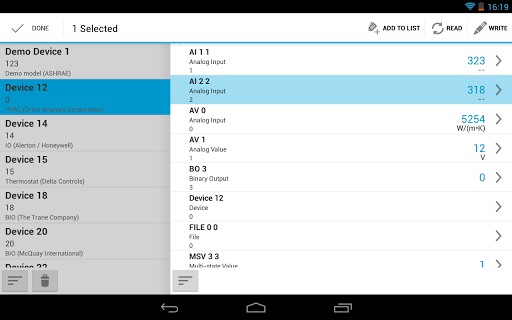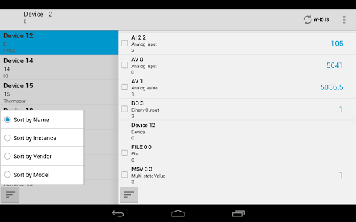 BACnet® /IP client for Android, allows to discover and access devices on BACnet® networks.