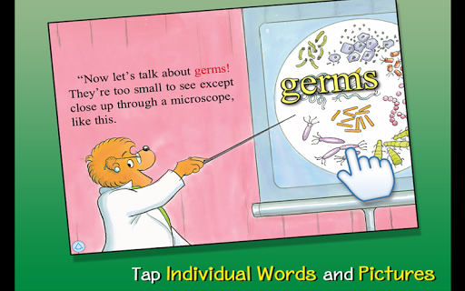 Join the Berenstain Bears in this interactive storybook app as Sister, Brother, and Papa learn all about avoiding germs to stay healthy! Explore pictures, learn new vocabulary, and follow along with three fun ways to read! Will the Bears apply what they learn and avoid getting sick at school?