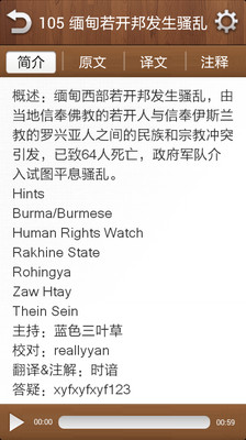 为了便于大家随时随地学外语,沪江网特别将2011年的100篇BBC听写精华做成安卓应用,每篇材料长度为1分钟左右,适合精听,听力材料由沪江听写酷英语编辑部各位优秀的小编经过特别精选,不仅精心打造最完美原文与最佳译文,更为大家特别附赠贴心注解,让大家的听力训练如虎添翼!
