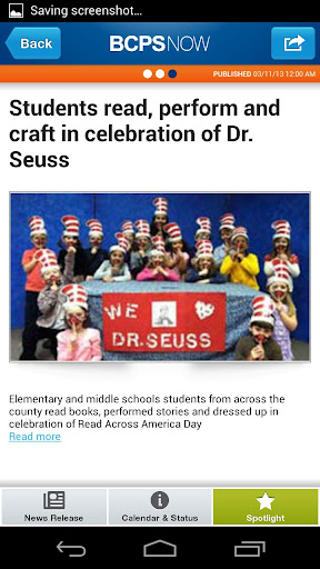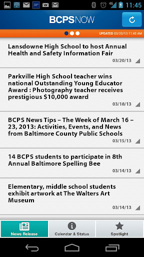 BCPS Now delivers the latest news, events and operating status to your smartphone. News and events are stored to your device for off-line viewing.