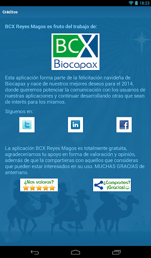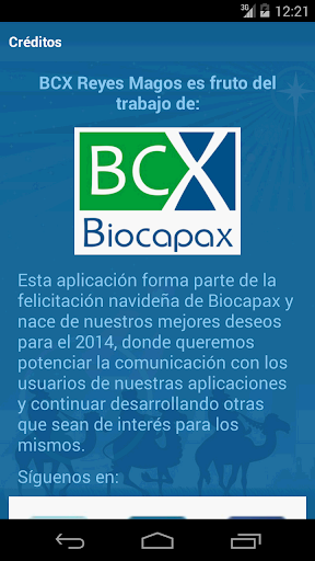 BCX Reyes Magos forma parte de la felicitación navideña de Biocapax y nace de nuestros mejores deseos para el 2014, donde queremos potenciar la comunicación con los usuarios de nuestras aplicaciones y continuar desarrollando otras que sean de interés para los mismos.