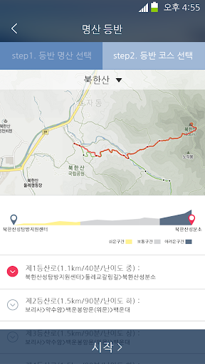 코스 등산시, 현재 위치와 이동 시간, 거리 등을