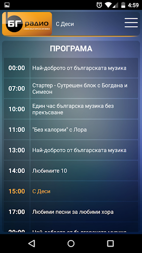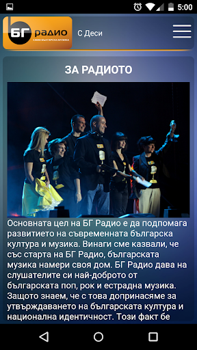 Чрез това приложение можете да слушате радиото за българска музика - БГ Радио. Това е онлайн стрийм на оригиналната програма на радиото, директно от студиото в София.