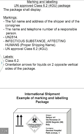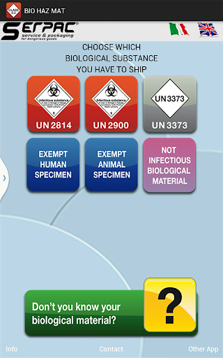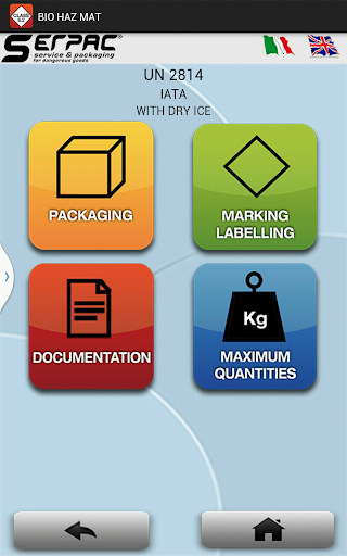 BIO HAZ MAT is an application that, through guided steps, will allow you to prepare your shipment of infectious substance, (Category A and B), exempt human / animal specimen and not infectious biological material, in accordance with the requirements of ADR Regulations (by road) and ICAO/IATA Regulations (by air).