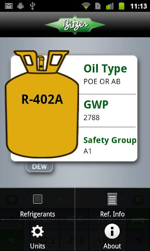 BITZER is pleased to announce the first free refrigerant pressure temperature relationship application designed for the Android. The application is an intuitive saturated pressure temperature reference wheel that focuses on the most common refrigerants found in AC and refrigeration systems. Instead of scrolling through many refrigerants rarely used, this app provides users with the ability to select the refrigerants they want.