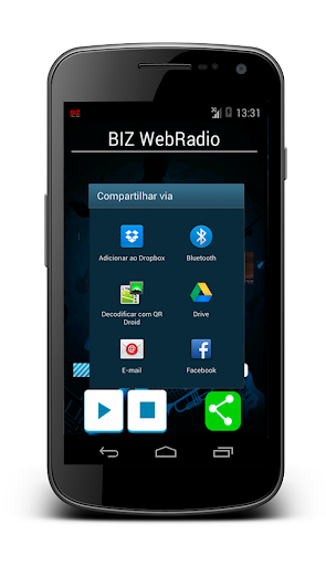 - Links Facebook, Twitter e Informações da rádio.