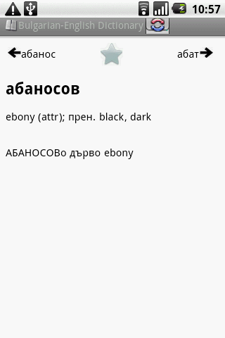 The compact and handy dictionary features about 20,000 unique colloquial terms in each direction. It allows input of Cyrillic via the popular Phonetic keyboard layout, which will be known to most users familiar with Cyrillic.