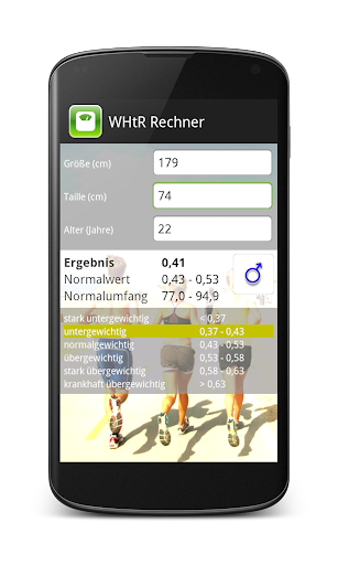 Es gibt jedoch Fälle, wo die Angaben des BMI nicht unbedingt passen müssen, hierfür eignet sich WHtR (Waist to Height Ratio / Taille zu Größe Verhältnis).