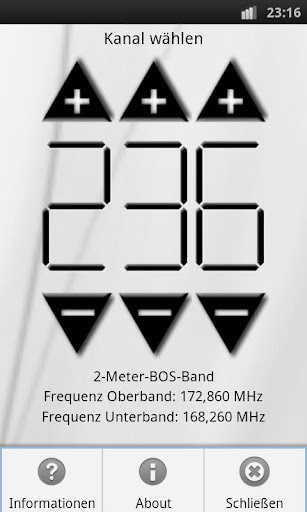 The channel is selected and the corresponding band and the corresponding frequencies (upper band and lower band) are shown.