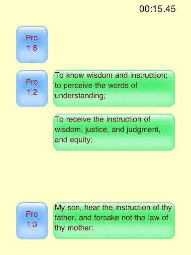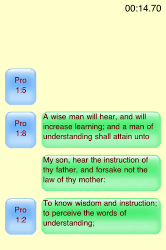 BQMatch 2015 is a Bible quiz matching game for the UPCI Bible Quizzing program. Verses included are for the 2015 quiz season only, covering the Way of Wisdom. To begin, the quizzer selects the quiz division (Beginner, Junior, Int Sr, or Exp Sr) and the range of verses to use, as well as the number of matches to practice. In addition, the quizzer selects whether to match the verse reference to the whole verse or just to the unique verse beginning. The game times the quizzer on how quickly each match is made, as well as keeps track of how many matches are missed. The game also maintains a list of the most recent game results.