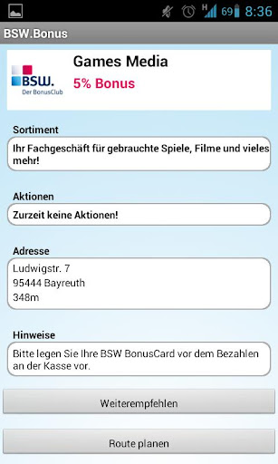 Egal ob Sie sich vorab informieren möchten oder spontan nach einem Partnergeschäft suchen: Die BSW App zeigt Ihnen welche BSW-Partnergeschäfte sich an einem Ort befinden, sortiert nach Entfernung und unterteilt in Produktgruppen. Auf einen Blick erfahren Sie die wichtigsten Informationen wie Sortiment, Adresse und BSW-Bonus. Lassen Sie sich gleich die schnellste Route von Ihrem Standort zum Partnergeschäft berechnen und anzeigen.