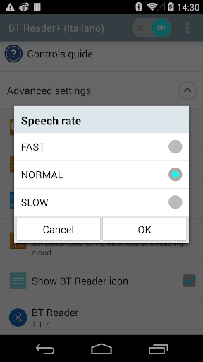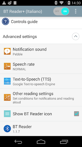 - Settings > Accessibility > Services >BT Reader Plus > Set to On