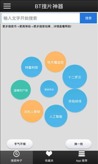 使用这个工具您可以下载到许多BT种子文件,各种搜索各种快,各种资源各种全,对于视频资源可以一键调用迅雷云播进行播放,当然也可以一键调用迅雷下载种子以及资源当然还有你懂的 嘿嘿!