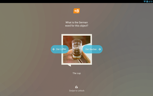 Babbel's official lock screen app. Now you can learn even more, having Babbel on your screen with one word each time you unlock your screen.