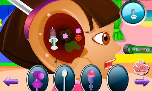 The cute baby has some problems with her ear. She can't sleep of the pain and isn't in the mood for anything. She needs your help to feel better so she can return to exploring all kinds of wonderful places. Use your amazing doctor skills to treat the ear problems that she has. So let's not waste anymore time and start the ear treatment! The first thing that you have to do as a doctor is sterilize the area with a special spray and get rid of all the germs and bacteria. Then, you have to do an injection to prevent further ear infections and also add some ear drops so that the cute baby doesn't have the earache anymore. Don't worry if you don't know exactly how to treat that baby's ear because you have all the necessary instruments in the bottom part of the screen. Have lots of fun!