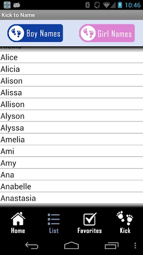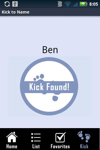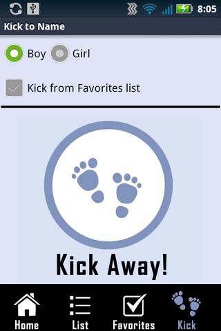 -- Even add your own crazy baby names to the Favorites list (if you somehow cannot find it on the Kick to name baby name generator list.) Then let baby kick his or her choice!