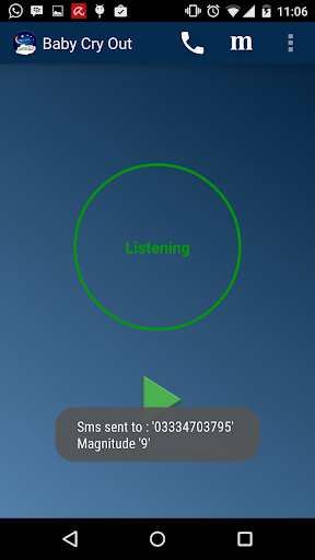 - For some reason if you can't Attend your baby immediately, you can simply send a message with keyword "Music" and the app will play a lovely lullaby for your baby to enjoy until you reach his/her room.