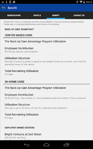 *Please note: Your employer must participate in the Back-Up Care Advantage Program in order to use this app. Not all employers who participate allow the use of this app. Please contact your human resources department for information on benefit availability. To register for the Back-Up Care Advantage Program, visit backup.brighthorizons.com.
