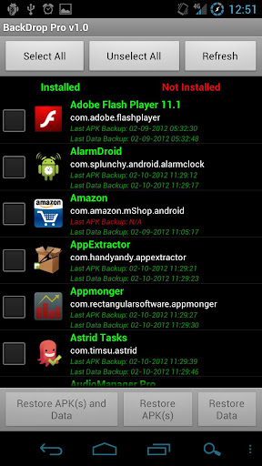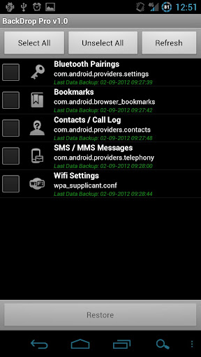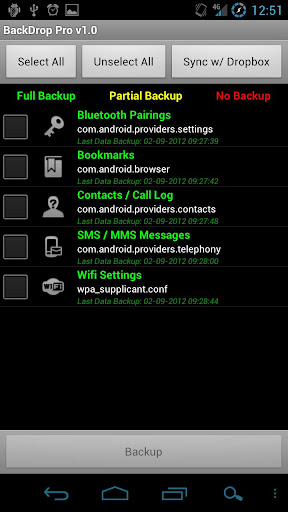 * Auto Restore (automatically restore your application data from Dropbox when an application is installed).